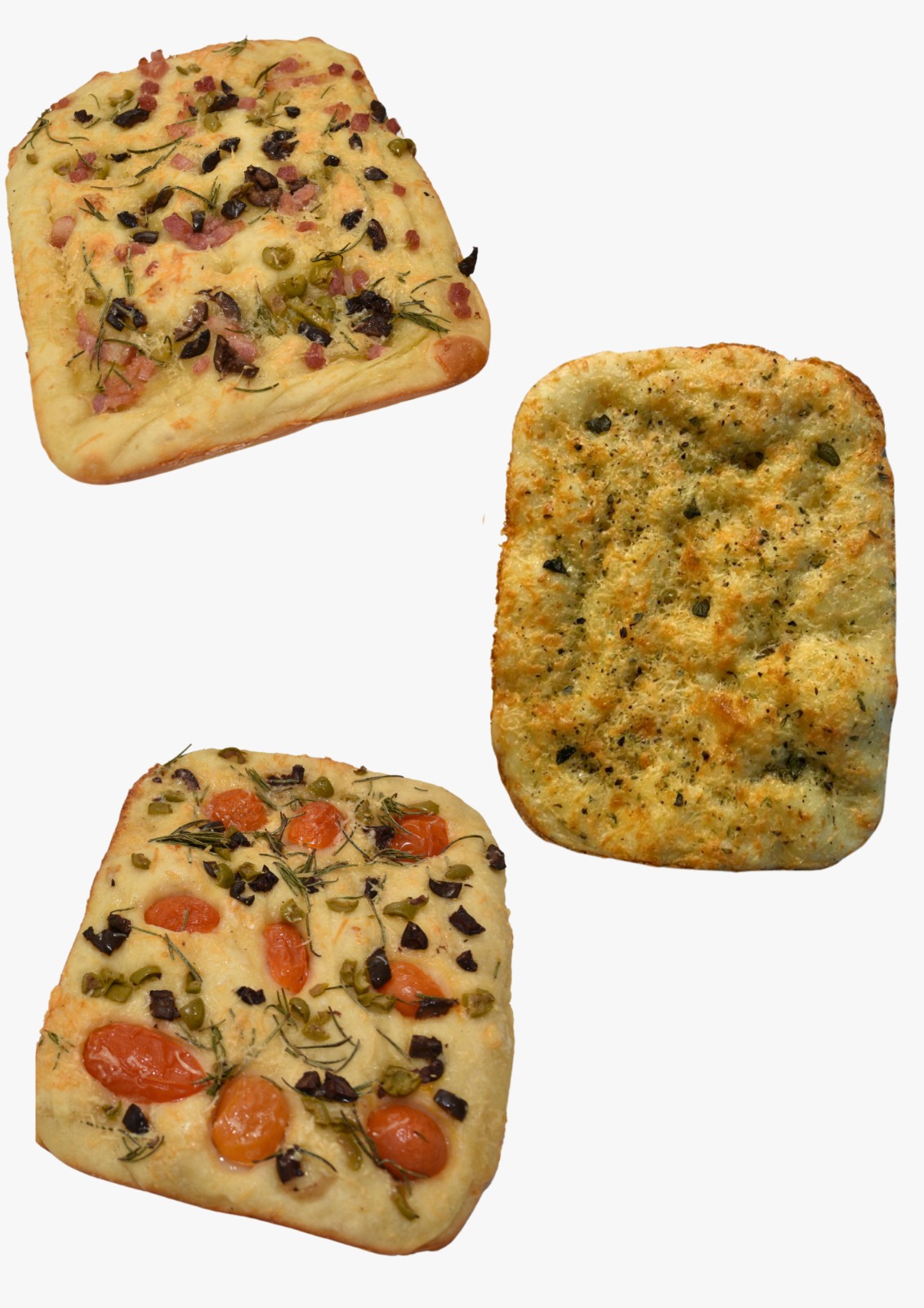 Sabor Auténtico y Simple: La focaccia no se esconde detrás de capas de queso y salsa. Su sabor brilla con ingredientes simples y de calidad que se hornean junto a la masa, como romero fresco, tomates cherry, aceitunas o simplemente sal marina, creando una armonía de sabores perfecta.